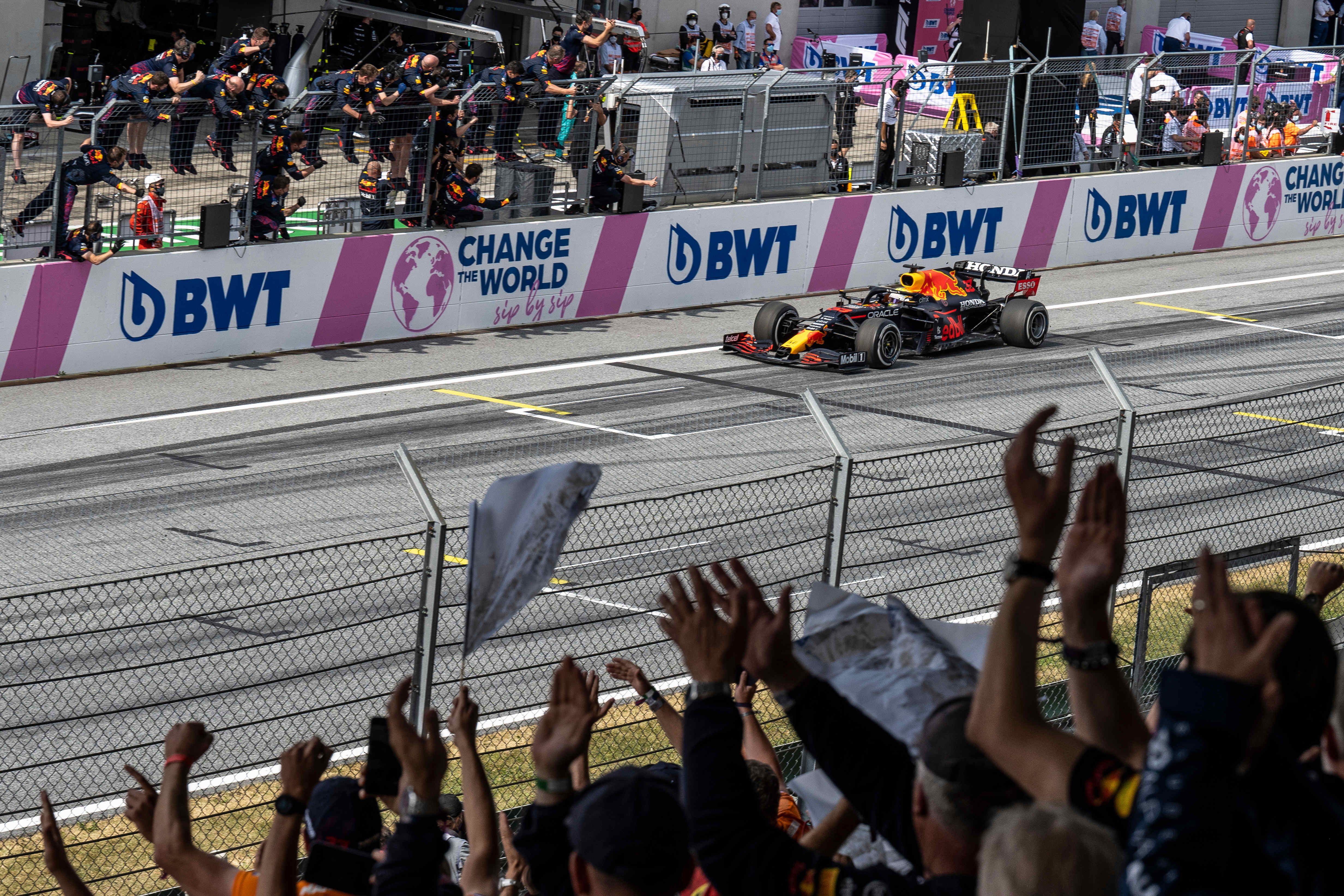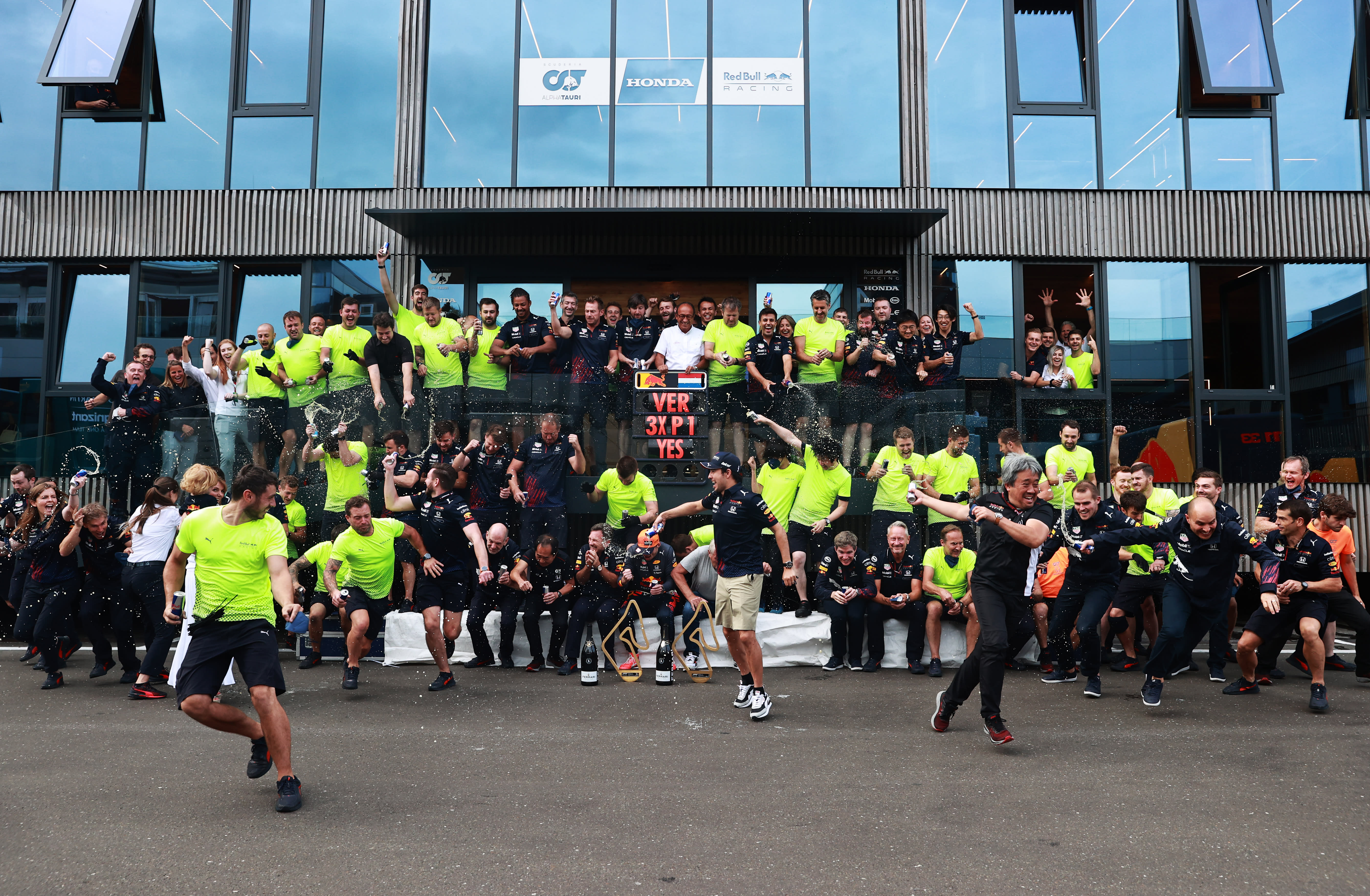 Max looked odds-on for victory, holding a steady four-seconds gap over his teammate six laps from home. Then in a split second it changed for Max, when a high-speed rear puncture sent him spearing into the barriers opposite the pit lane. Several laps of safety car were eventually followed by a red flag, leaving Checo with the lead of a race that would be reduced to a standing start followed by a two-lap sprint. He held his nerve, held his place and became the fifth driver to win a grand prix for the Team.