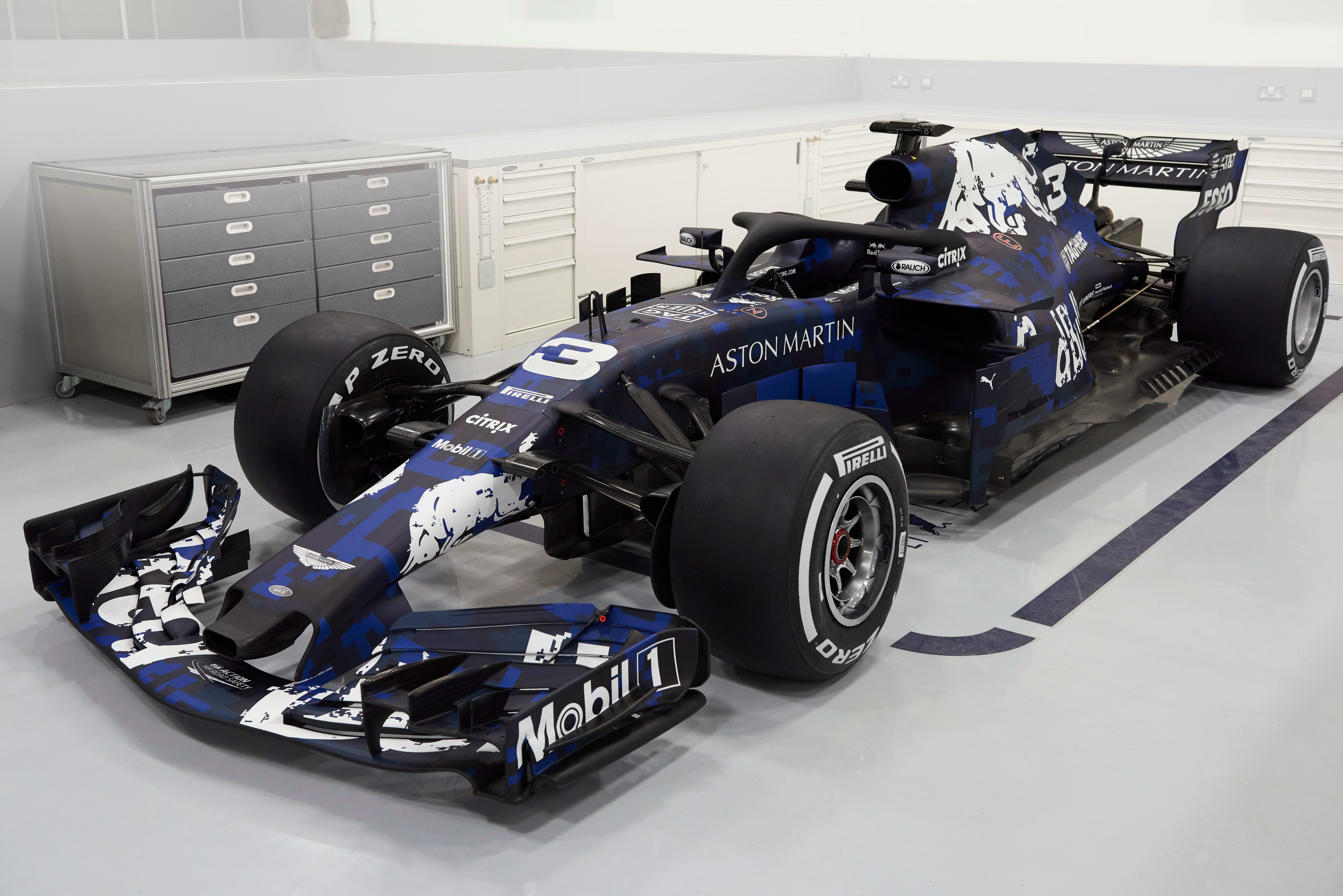Three years after CamoBull, we unveiled another spectacular livery at the 2018 season launch. On a cold, damp February morning, the RB14 rolled out of the garages for a Silverstone shakedown that once again went viral. That was thanks to its amazing digital-effect camouflage in royal blue and black. Fans went wild for the one-off colour scheme and called for it to be made the racing livery, but 10 days later in Barcelona we went testing with a subtly revised traditional livery. DisruptoBull remains a team favourite, however, and an RB14 in this livery still graces the entrance to the MK-7 building.