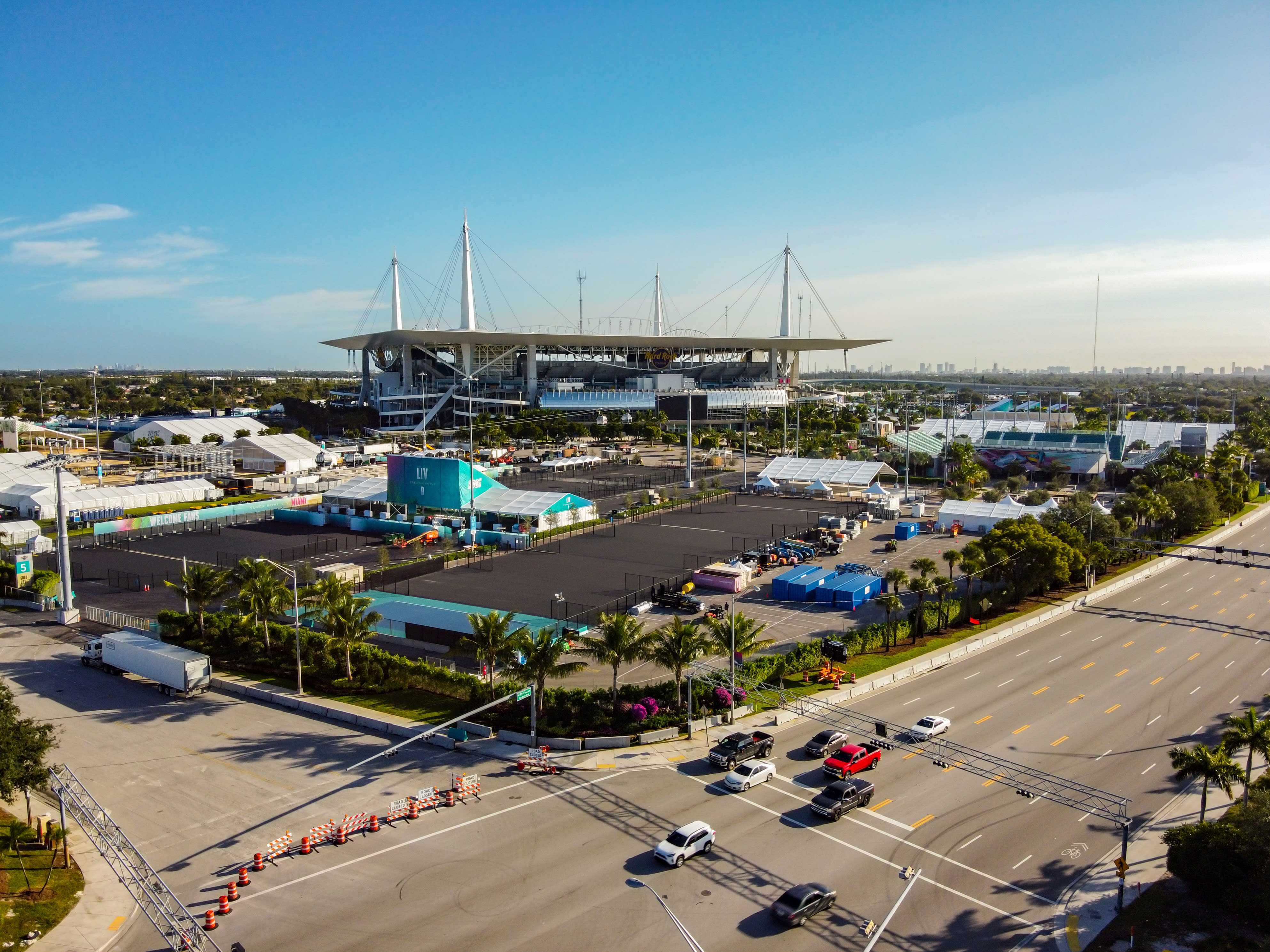 For the benefit of fans, the circuit is split into a series of zones, each featuring more entertainment and refreshment options than you can shake an alligator at. The Hard Rock Stadium is its own zone. It’s a square(ish) but oriented like a diamond, with corners at the cardinal points.