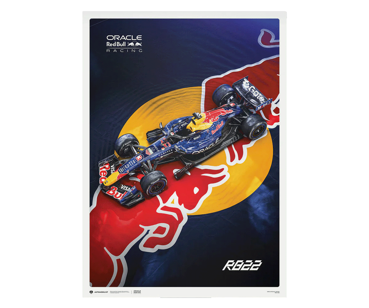 Oracle Red Bull Racing unveils the RB22, a car that signals intent before a single lap is turned. Captured from a commanding top-down perspective and set against the iconic Red Bull insignia, this official poster celebrates the reveal of a machine designed to define the next era of Formula 1®. Sharp lines, purposeful proportions, and a striking visual balance reflect the philosophy behind the RB22: precision without compromise. A powerful statement piece for fans who follow the sport not only for results, but for the engineering and vision that shape the future.