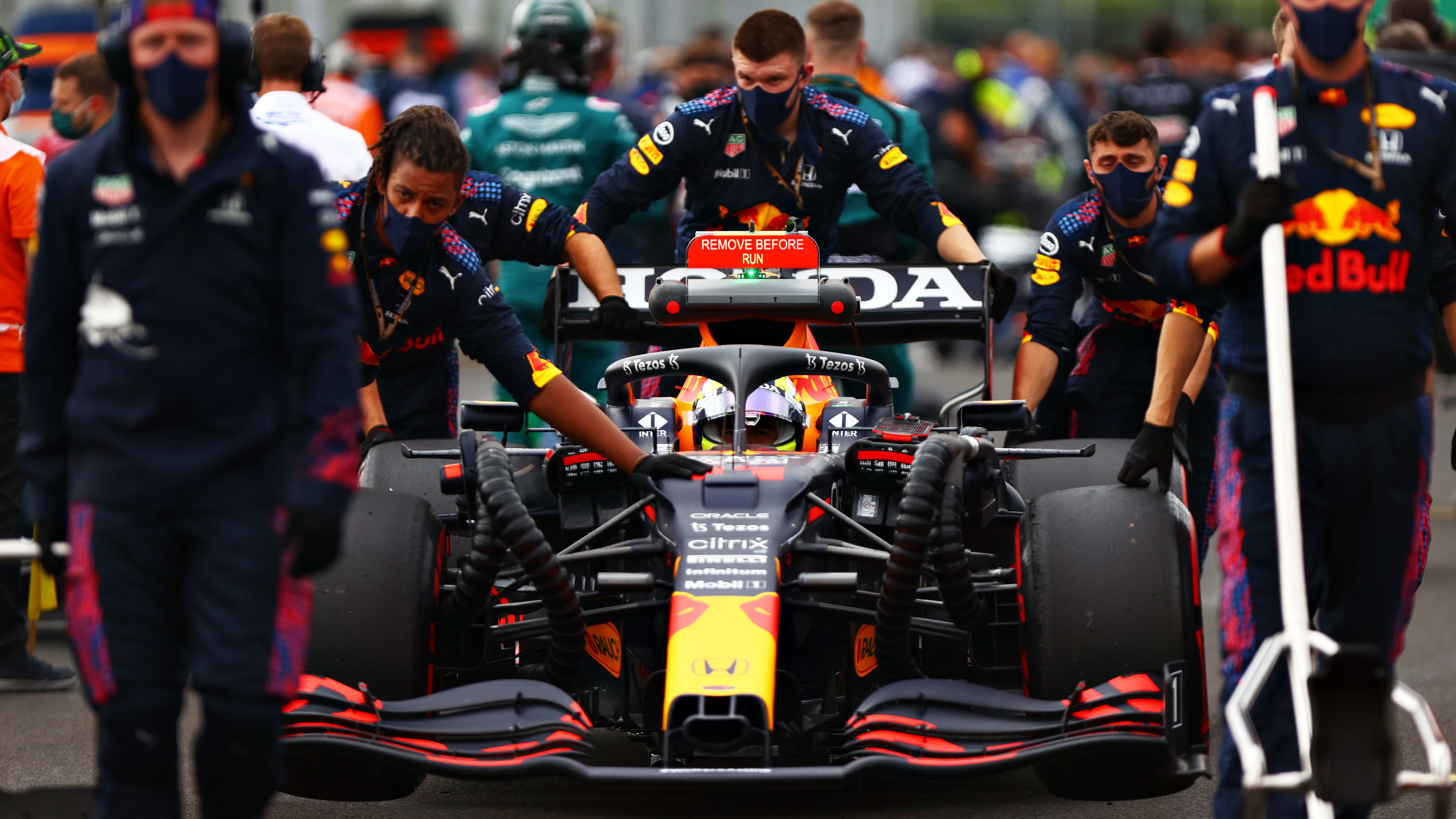 En pit lane el piloto neerlandés estaba ahora en el P13. Mientras que Lewis Hamilton, que había conseguido la pole position, seguía en el P1, por delante de Esteban Ocon (Alpine) y Sebastian Vettel (Aston Martin). Carlos Sainz era cuarto y precedía a Yuki Tsunoda (AlphaTauri) y Nicholas Latifi. El séptimo lugar era para Fernando Alonso (Alpine), quien le ganaba la partida a George Russell (Williams), Kimi Räikkönen (Alfa Romeo) y Mick Schumacher (Haas). Al reemprenderse la prueba, por delante de Max se encontraban Pierre Gasly (AlphaTauri) y Daniel Ricciardo (McLaren).
